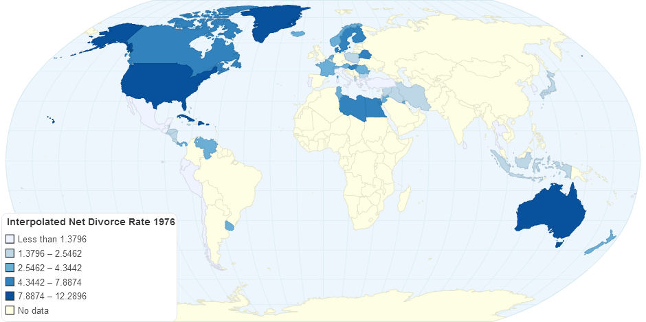 Number of Legally Registered Divorce per Thousand Married Population, 1976