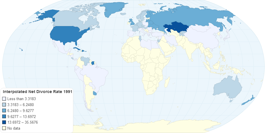 Number of Legally Registered Divorce per Thousand Married Population, 1991
