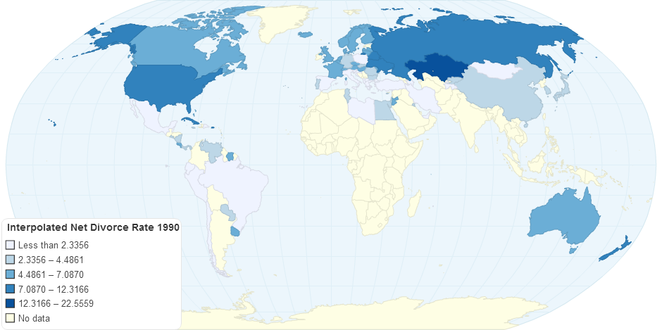 Number of Legally Registered Divorce per Thousand Married Population, 1996