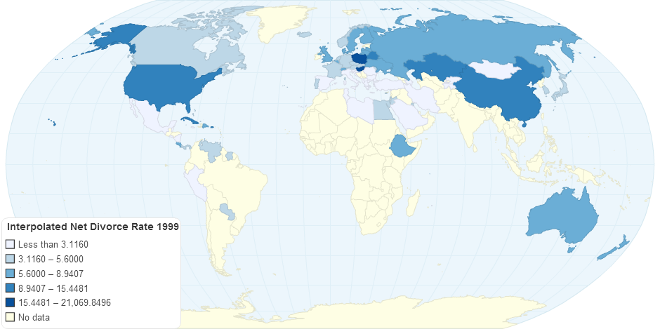 Number of Legally Registered Divorce per Thousand Married Population, 1999