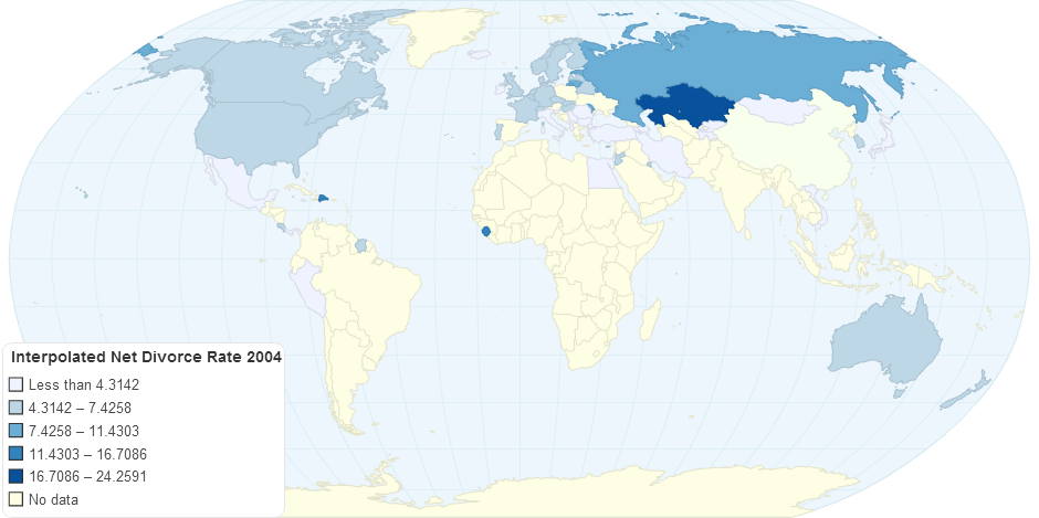 Number of Legally Registered Divorce per Thousand Married Population, 2004