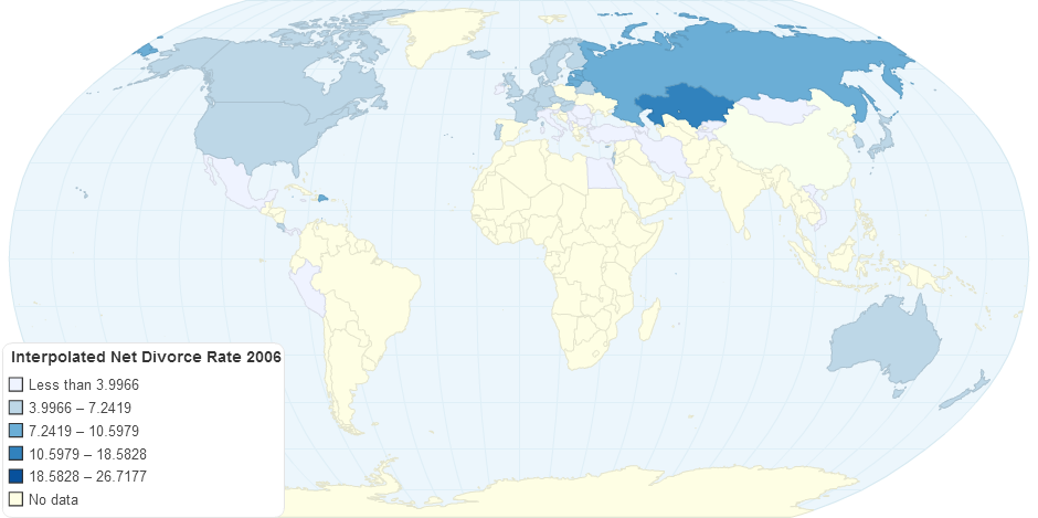 Number of Legally Registered Divorce per Thousand Married Population, 2006