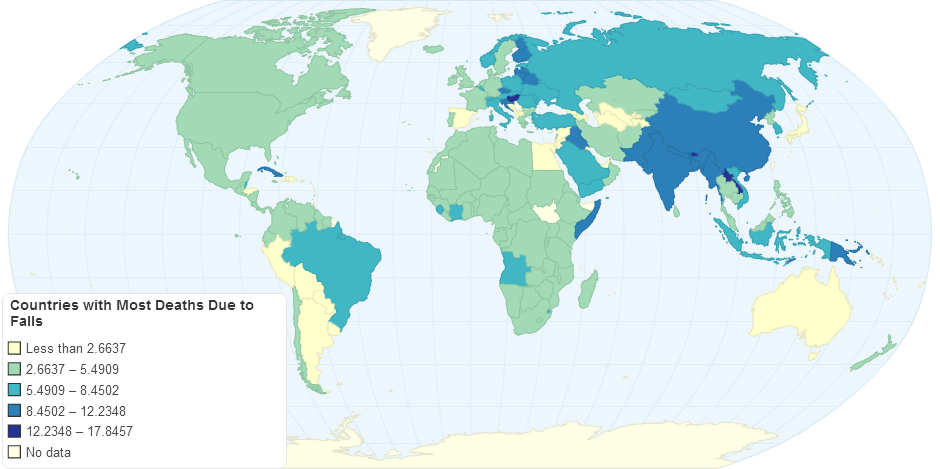 Countries with Most Deaths Due to Falls