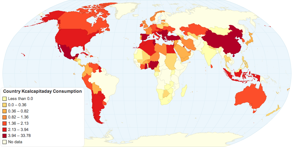 A map made for a project to visualize worldwide trends in chili consumption