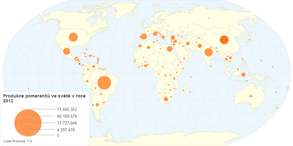 Produkce pomerančů ve světě v roce 2013