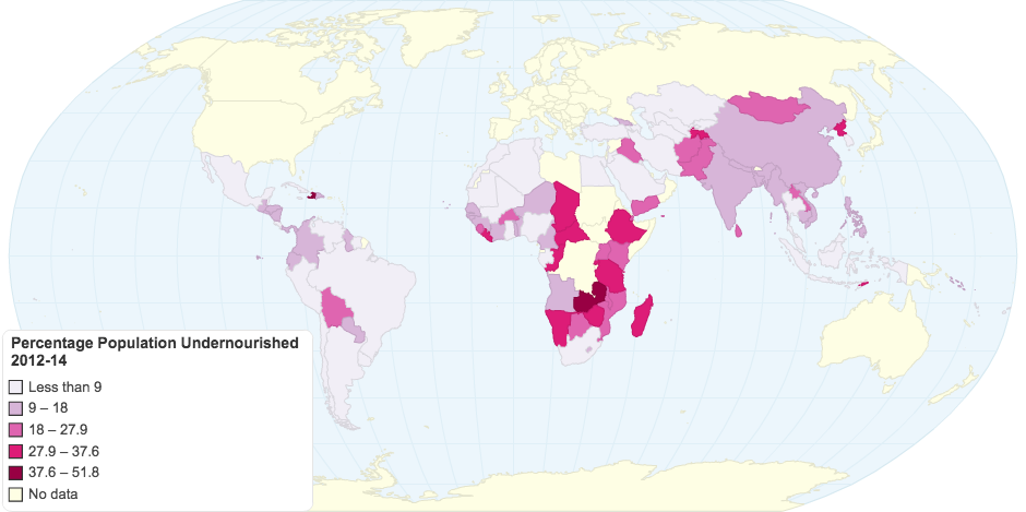 World map of undernourishment, source: FAO Food Security Indicators