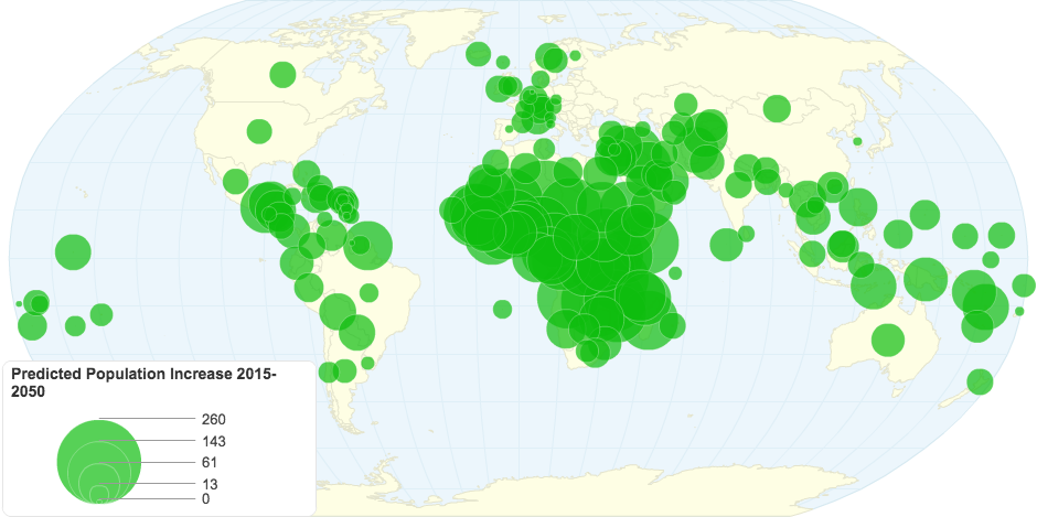 Predicted Population Increase 2015-2050. UN Data.