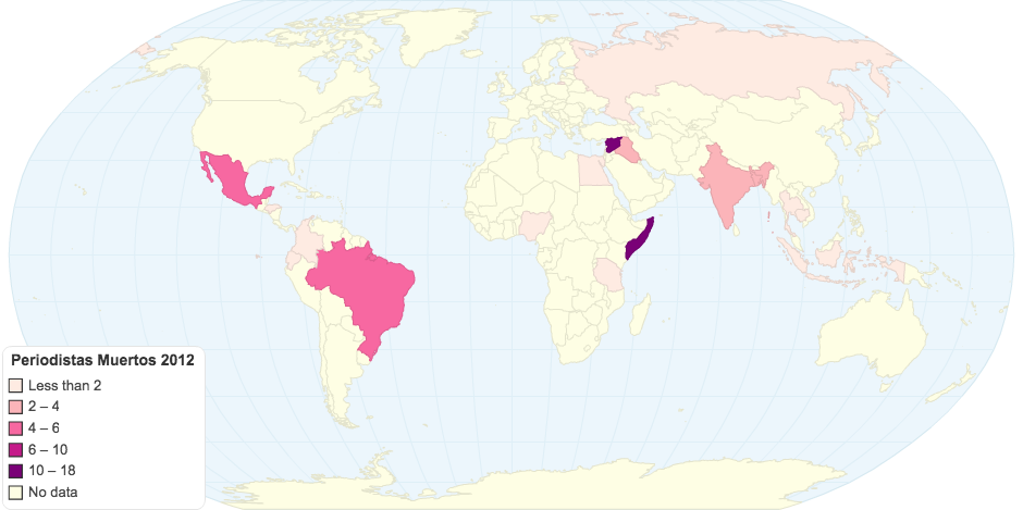 MAPA MUNDI DE PERIODISTAS MUERTOS, 2012.