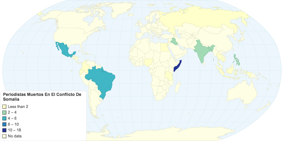 Muertes por países de los periodistas que cubren el conflicto de Somalia durante el año 2012