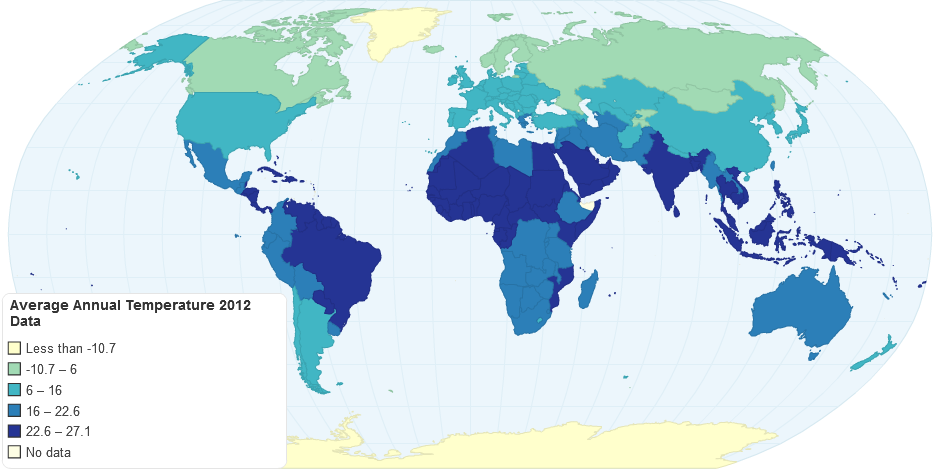Average annual temperature by country based on measured data, 2012