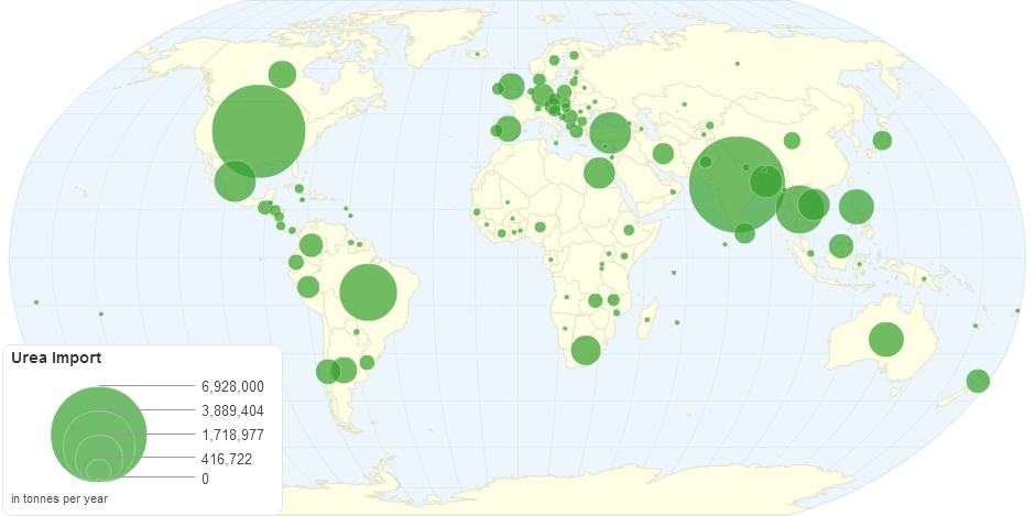 This map shows urea imported by country.