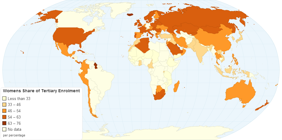 Tertiary enrollment rates are an expression of the percentage of high school graduates that successfully enroll into university. More precisely, the tertiary enrollment rate is the percentage of total enrollment, regardless of age, in post-secondary institutions to the population of people within five years of the age at which students normally graduate high school.