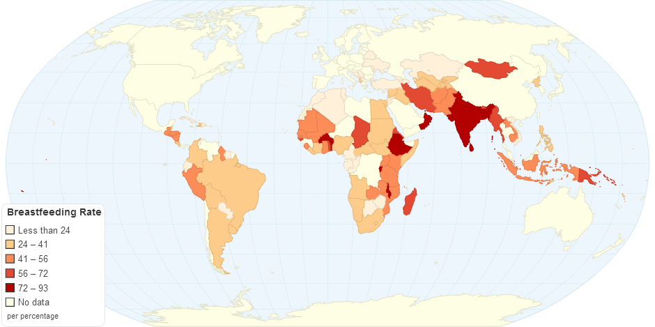 This map shows breastfeeding rate by country.