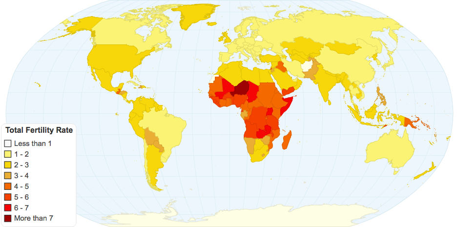 This is a world graph of the Total Fertility Rate of the world.
