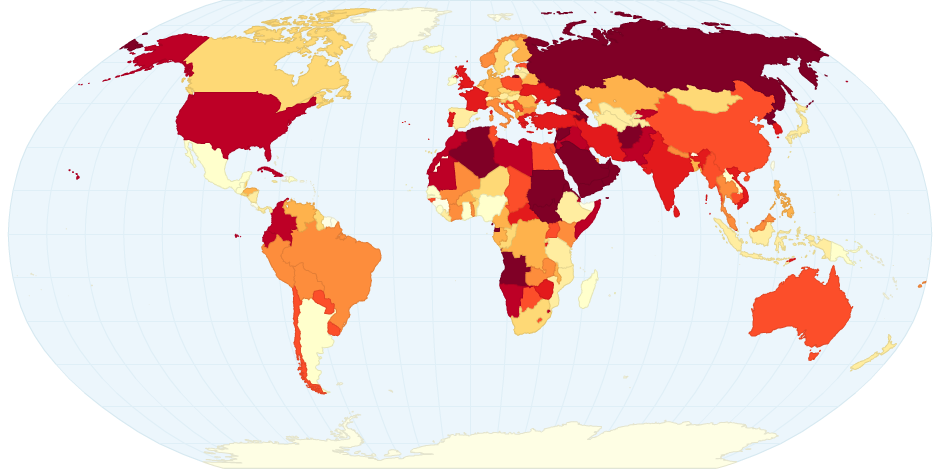 Map of military expenditure worldwide