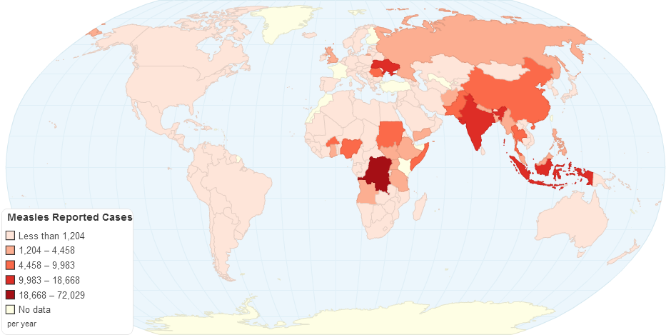 This chart shows measles reported cases by country.