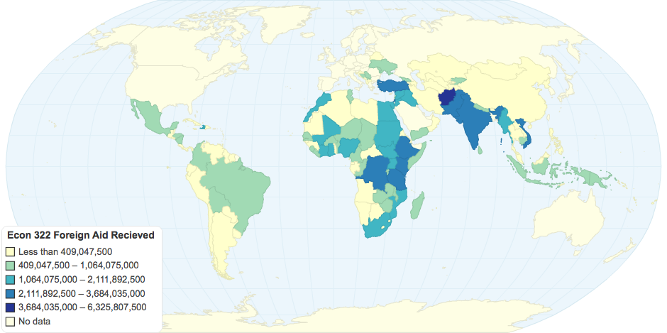 Average foreign aid received per country from 2010-2013. Econ 322.