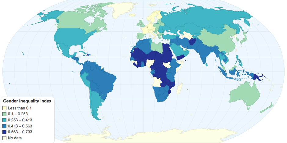 A composite measure reflecting inequality in achievements between women and men in three dimensions: reproductive health, empowerment and the labour market.