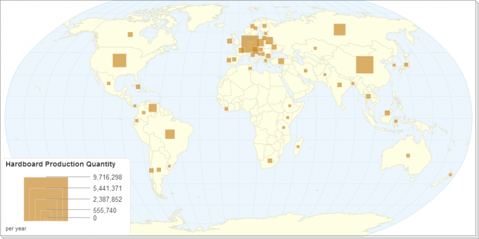 This chart shows hardboard production,import and export quantity by country.