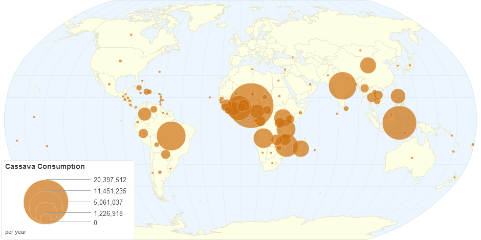 Cassava (yuca or manioc) is a nutty flavored, starch-tuber in the spurge family (Euphorbiaceae) of plants. It thought to have originated from the South-American forests. Its sweet, chewy underground tuber is one of the popular edible root-vegetables. Indigenous people of many parts of Africa, Asia and South American continents used it as staple food source since centuries. Together with other tropical roots and starch-rich foods like yam, taro, plantains, potato, etc, it too is an indispensable part of carbohydrate diet for millions of inhabitants living in these regions.