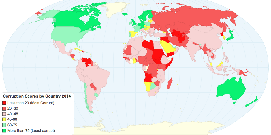 This is a score generated by Transparency International which measures corruption score by country, with higher values indicating less corruption.