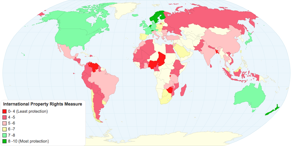 This is a measure of property rights, by country, with higher numbers indicating better protections of property rights.