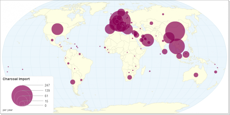 This chart shows charcoal import,export and production details by country.