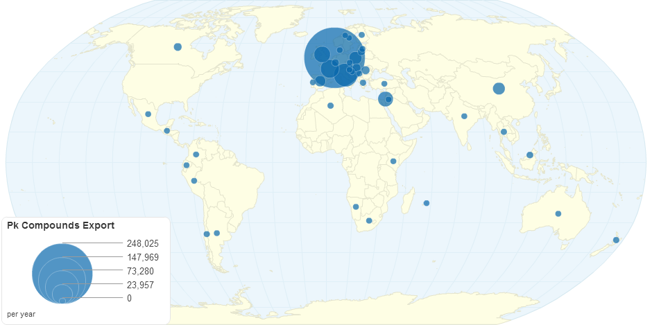 This chart shows pk compounds export details by country.