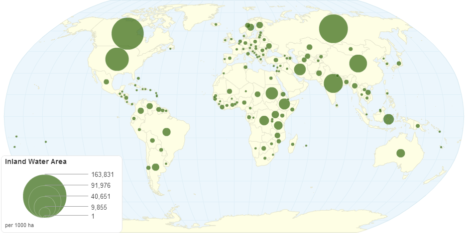 This chart shows inland water area details by country.