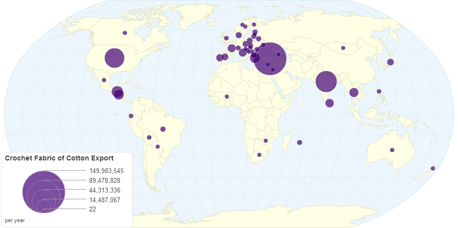 This chart shows crochet fabric of cotton export details by country.