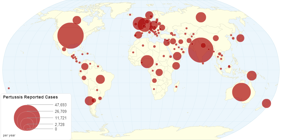 This chart shows pertussis reported cases details by country.