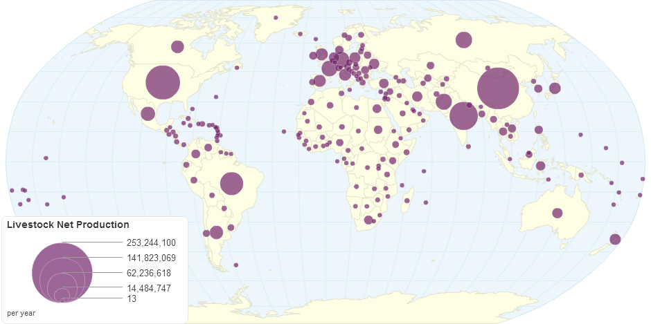 This chart shows livestock net production by country.
