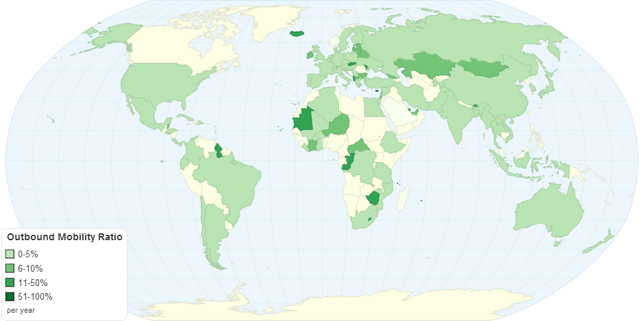 This chart shows outbound mobility ratio details by country.