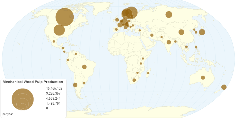This chart shows mechanical wood pulp production details by country.