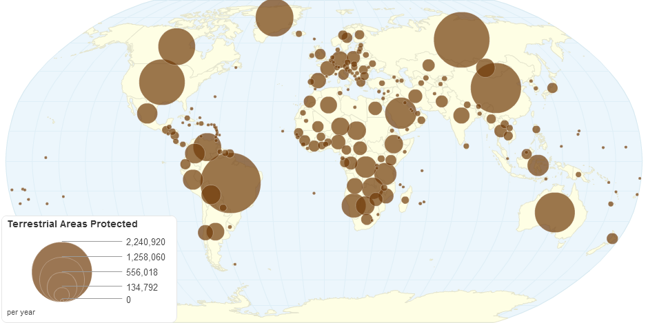 This chart shows terrestrial areas protected details by country.