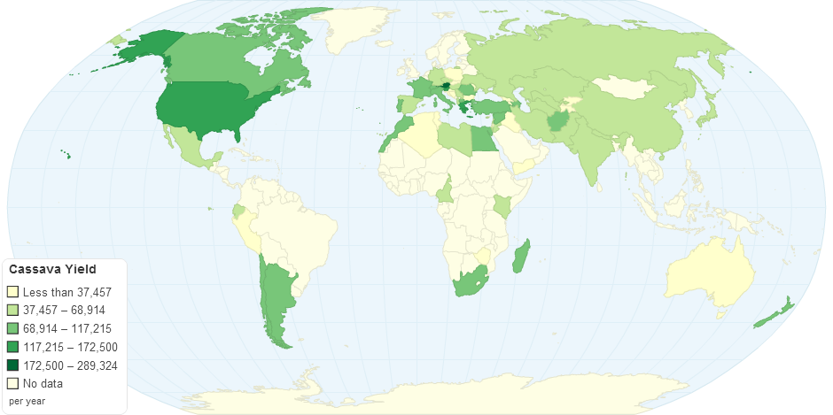 This chart shows Cassava Yield by country.