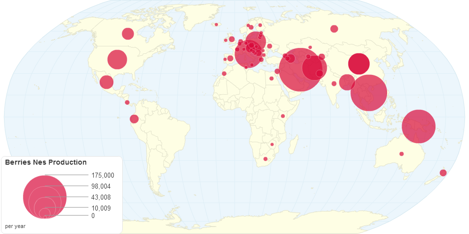 This chart shows berries nes production by country.