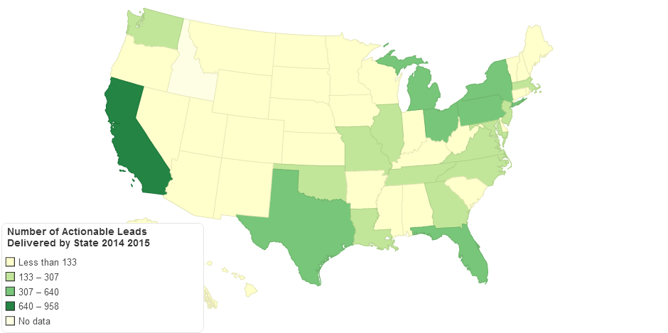 Number of Actionable Leads Delivered by State 2014-2015