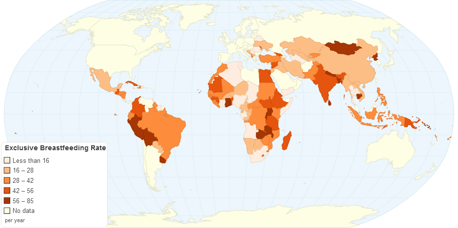This chart shows exclusive breastfeeding rate by country.