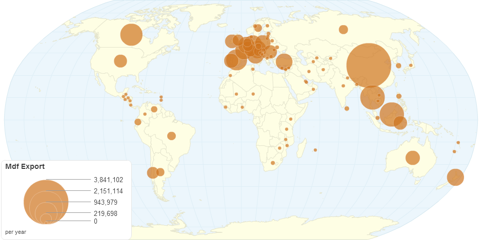 This chart shows MDF (Medium-density fibreboard) exportdetails by country.