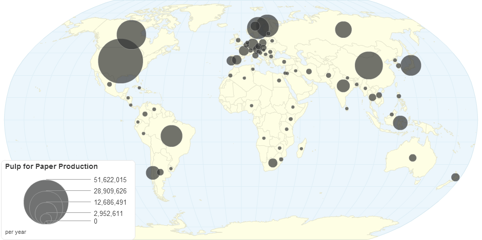 This chart shows pulp for paper production details by country.