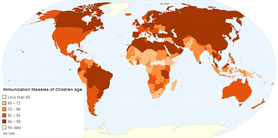 This chart shows immunization measles (% of Children Age) details by country.