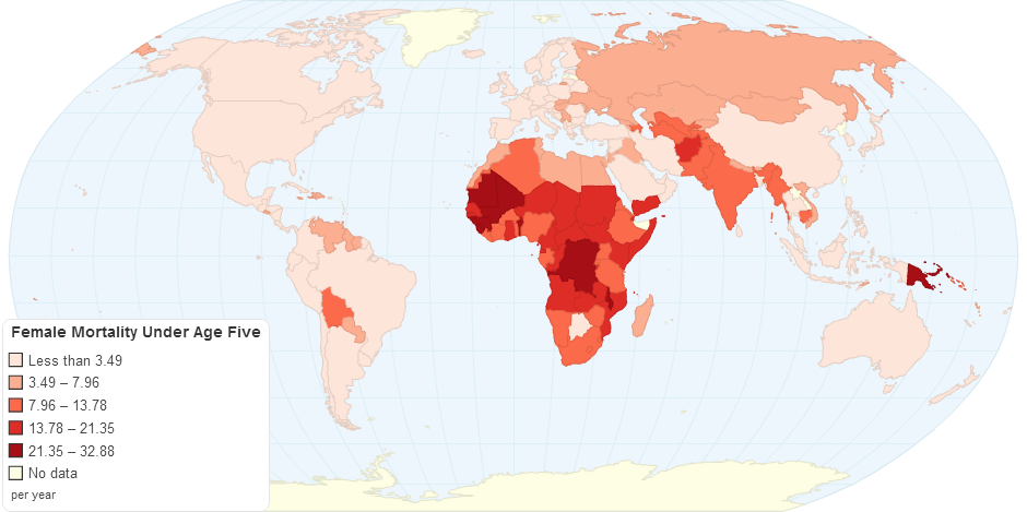 This chart shows female mortality (under age 5) details by country.