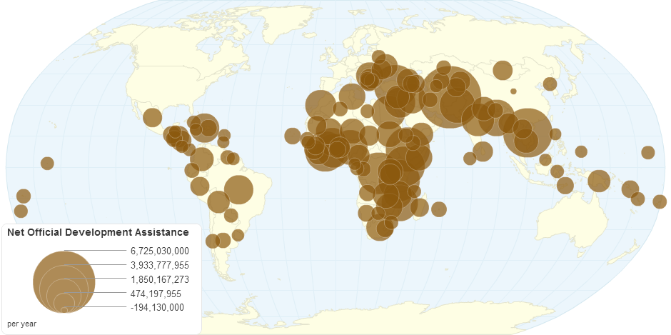 This chart shows net official development assistance details by country.