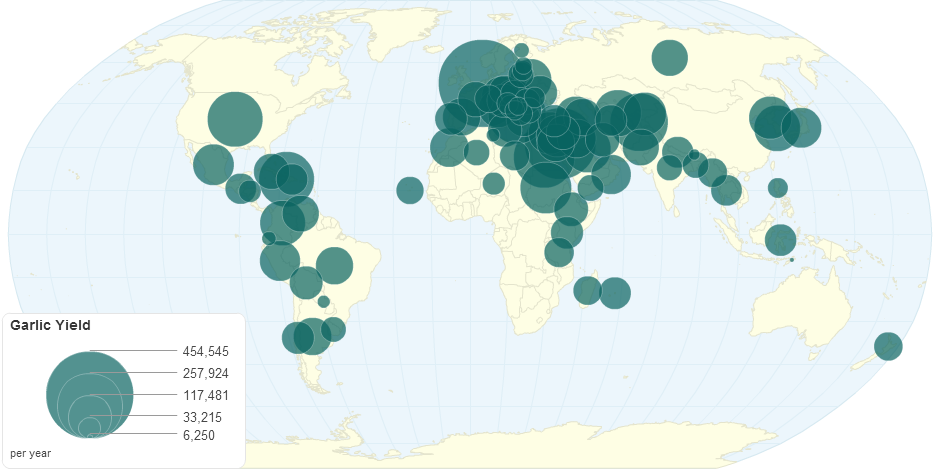 This chart shows garlic yield details by country.