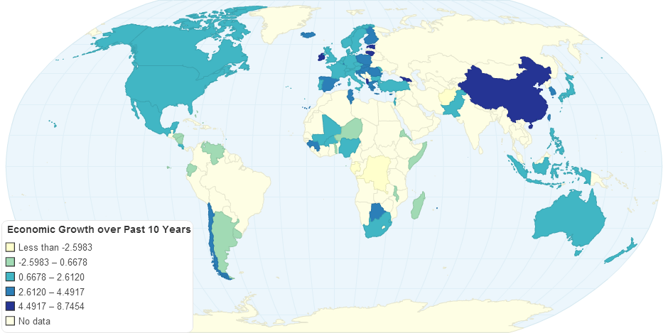 Countries with better resources economically grow (over time) more than others (eg. China).