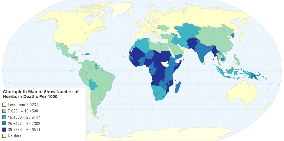 Choropleth Map to Show Number of Newborn Deaths Per 1000