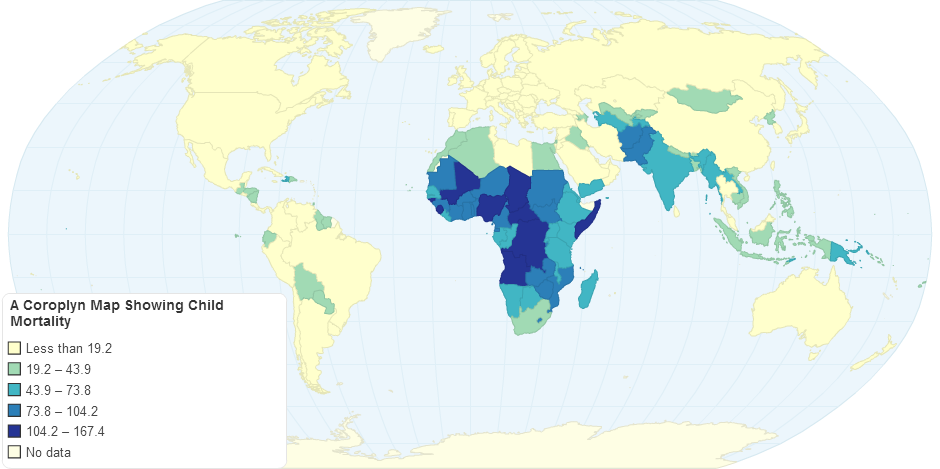 I found out that the child mortality rates are highest in Africa. The Child mortality rate is also high in India but it is very low in the U.S.A and In Western Europe.