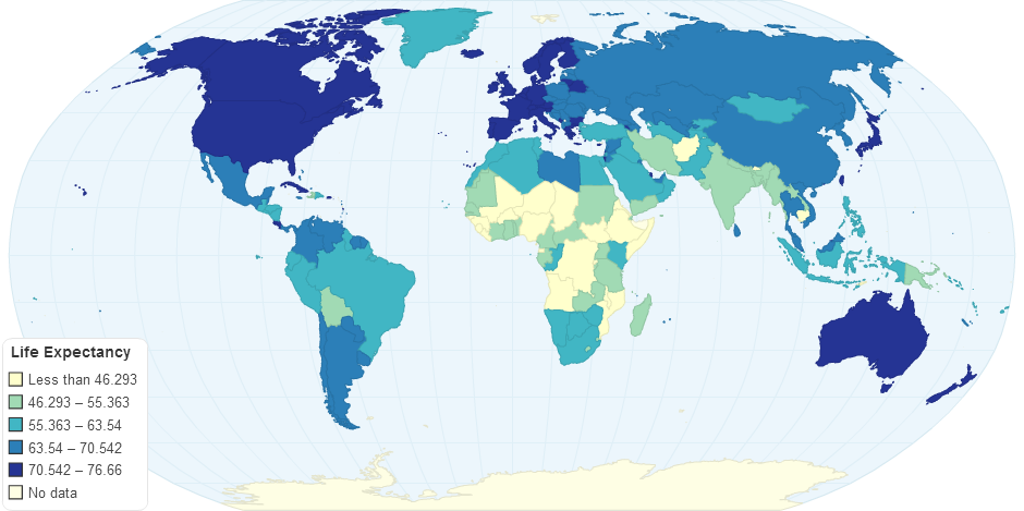 Choropleth Map Showing the Life Expectancy of Peopl ...