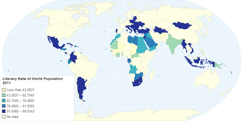 World Literacy Map: Literacy Rate Adult Total of Pe ...